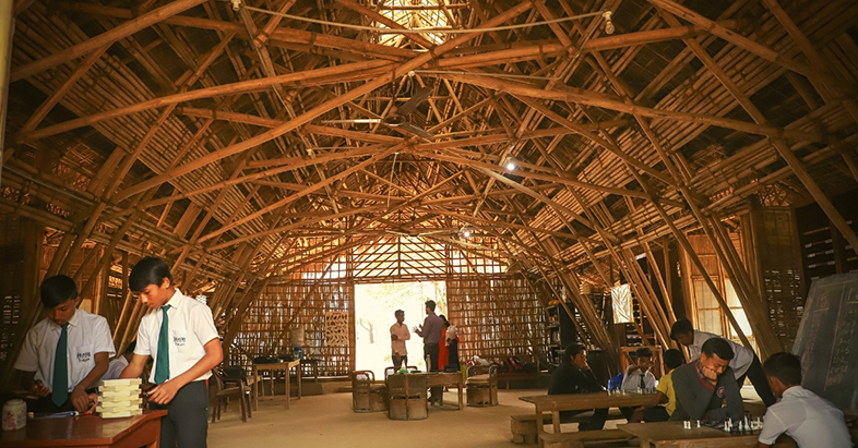 This is a typical scene in this unusual school – Akshar, tucked away in the pristine woods of Pamohi, Assam, where students bring polythene bags full of plastic waste as the only form of fee that the school accepts.