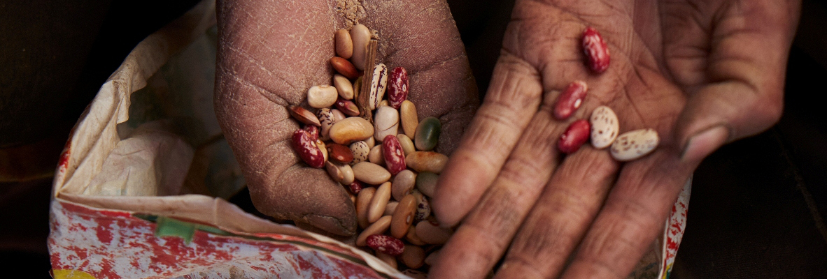 Hands of farmer Ganga Devi of village Ringu in Pithauragadh, Uttarakhand, showing her rajma seed (by Vinay Nair)