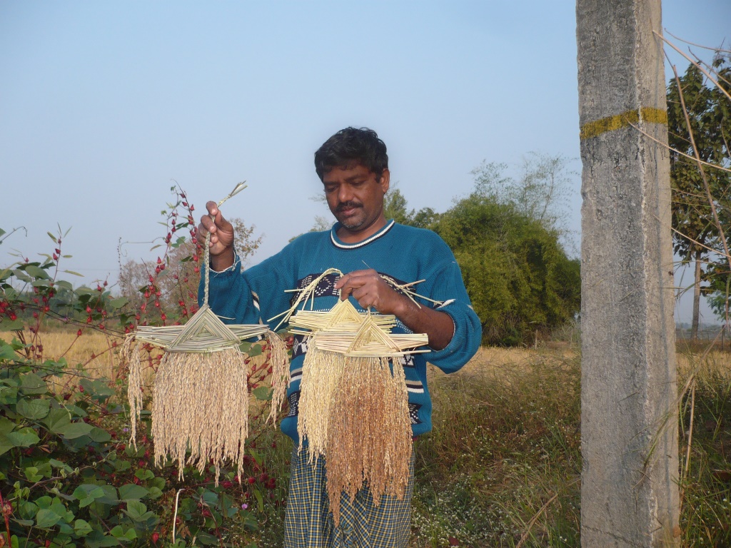 होमप्रकाश साहूं धान की कलाकृतियों के साथ