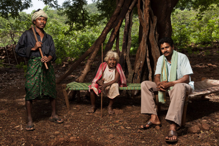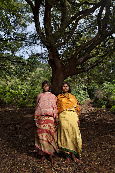 Dongria Kondh women stand under a tree in Hundijali village in the Niyamgiri hill range. Image by Indrajeet Rajkhowa.