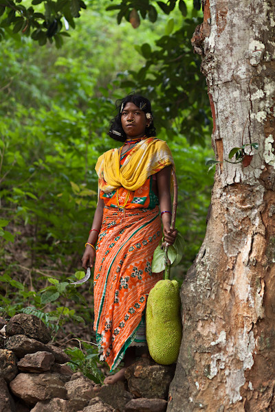 A Dongria woman collects wild jackfruit to sell in the market. Image by Indrajeet Rajkhowa.