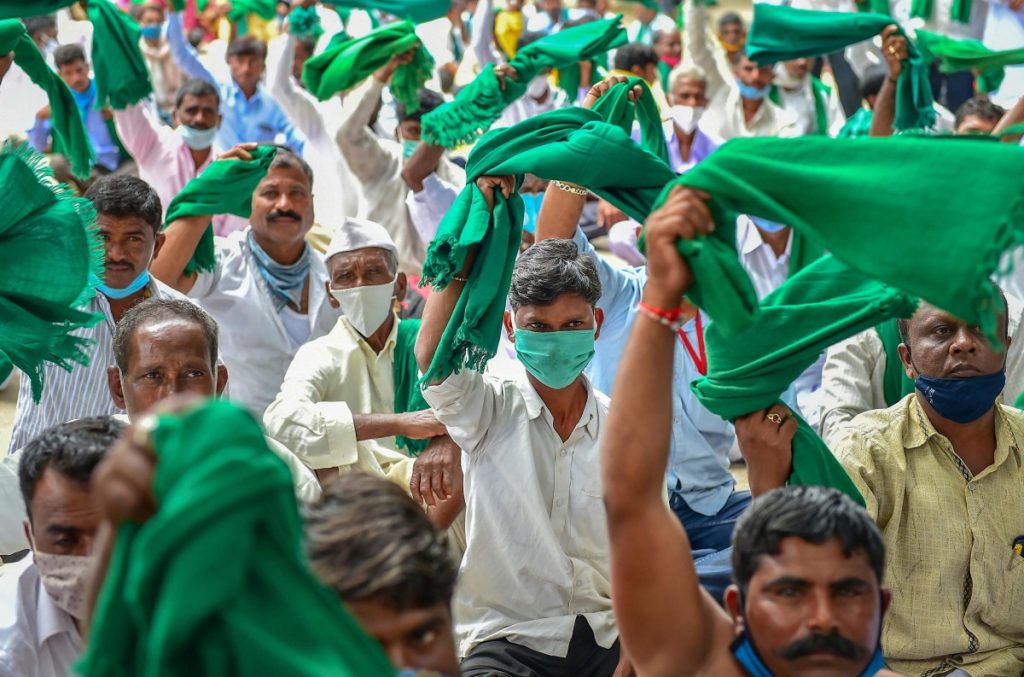 Farmers protest against the passage of new farm Bills in Bengaluru, September 22, 2020. Photo: PTI
