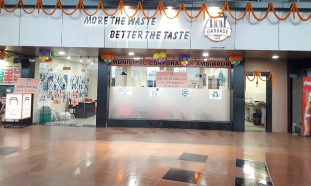 But last week, Yadav was sitting at a table at the Garbage Cafe in Ambikapur, in the state of Chhattisgarh, over a piping hot meal of dal, aloo gobi, poppadoms and rice. He earned the food in exchange for bringing in 1kg of plastic waste. “The hot meal I get here lasts me all day. And it feels good to sit at a table like everyone else,” he said.