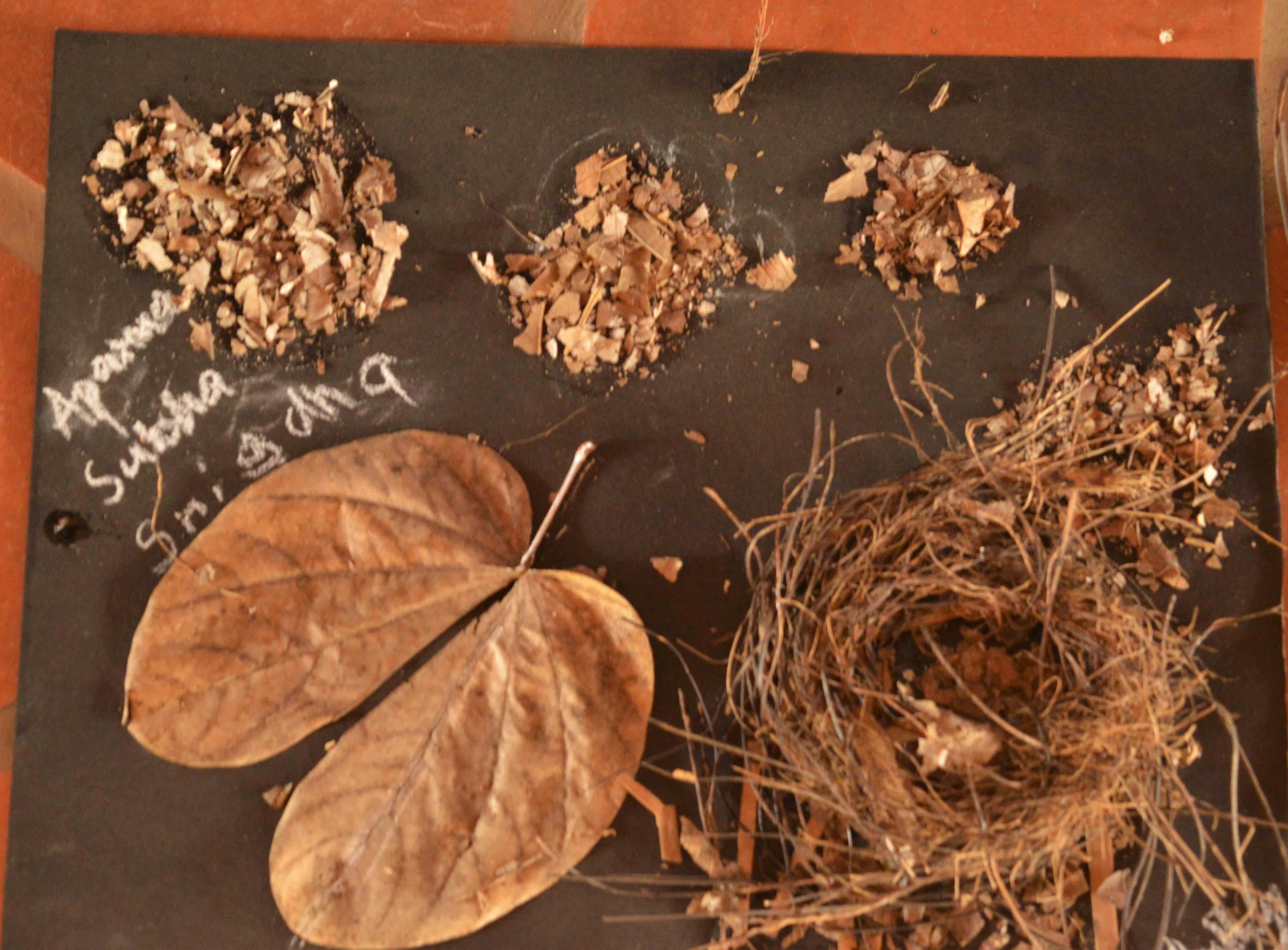 அகல்யா மரபுமுறை வளாகத்தைச் சுற்றிலும் விரவிக் கிடக்கும் இயற்கைப் பொருள்களைத் தேர்ந்தெடுத்து, தாள்களில் ஏதேனும் படைப்புகளை உருவாக்குமாறு குழந்தைகளைப் பணித்தனர். இயற்கையன்னைக்கும் குழந்தைகளுக்குமான நெருக்கம் அவர்களது கலைப்படைப்புகளில் வெளிப்பட்டது; அவர்களைக் குதூகலிக்கச்செய்யும் பருவங்களும் இயற்கை வாழ்வியலும் அவற்றில் சித்தரிக்கப்பட்டிருந்தன. தென்னை நார்கள், தென்னை ஓலைகள், சருகுகள் ஆகியவற்றைக் கொண்டு அவர்களது படங்களுக்கு வெவ்வேறு வண்ணங்கள் கொடுக்கப்பட்டன.