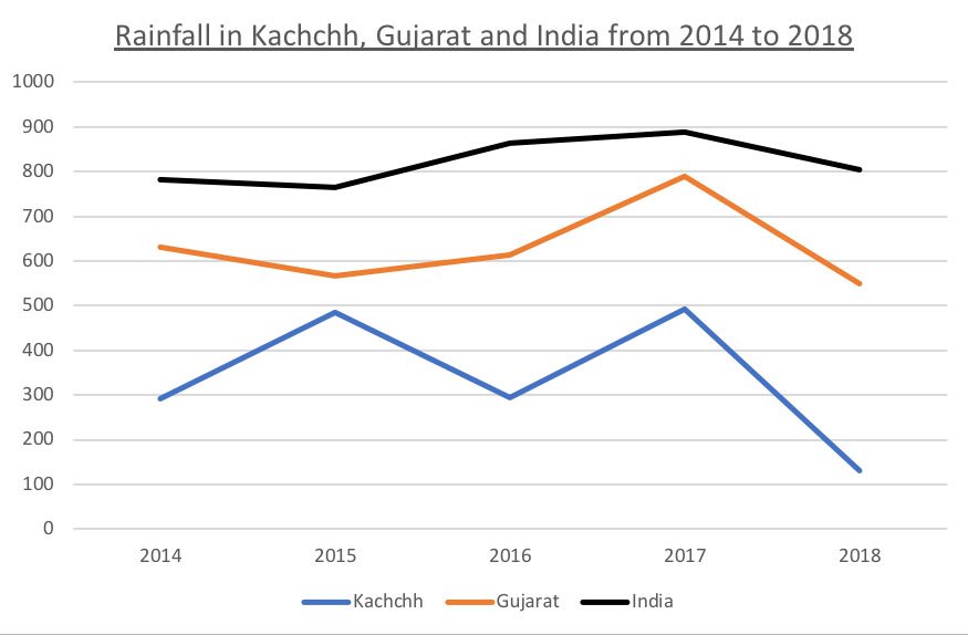 In 2018, rainfall in Kachchh, home to this maldhari family, plummeted to a mere 131 millimetres. The ‘normal’ annual average for Kachchh is 356 mm. But this was not a wayward year. The monsoon in the district has been increasingly erratic for over a decade now. Data of the India Meteorological Department (IMD) show that rainfall in the district fell to 291 millimetres in 2014, to 294 in 2016, but went up to 493 mm in 2017. A similar five-year period four decades ago – 1974-78 – shows one disastrous year (88 mm in 1974) and four successive years in which the rainfall is above the ‘normal’ average.